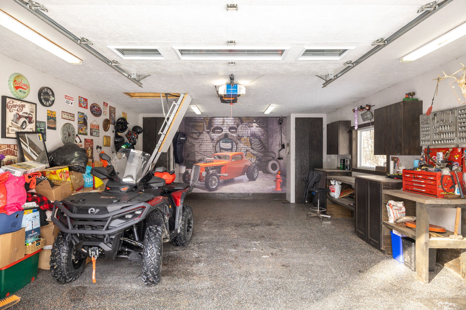 Garage chauffé muni d'un plancher en époxy, loft à l'étage,